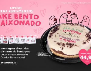 A Damay preparou o Cake Bento Apaixonado para surpreender seu amor no Dia dos Namorados. Com massa de chocolate e recheio de brigadeiro branco, escolha entre 8 mensagens divertidas do Bento. O presente ideal para fazer uma surpresa especial para o seu amor.