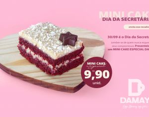 Dia 30 de setembro se comemora o dia da secretária e o presente Perfeito está na Damay, O mini cake é feito de red velvet com brigadeiro branco, decorado especialmente para valorizar o trabalho e desempenho de quem nunca esquece dos seus compromissos.