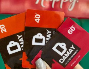 A Damay acaba de lançar mais uma linda opção de presente, disponível em 3 valores: R$ 20,00, R$ 40,00 e R$ 60,00. Nossos cartões presentes são perfeitos para as mais diversas ocasiões, dando a quem você tanto gosta a opção de escolher suas delícias Damay preferidas!