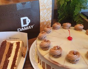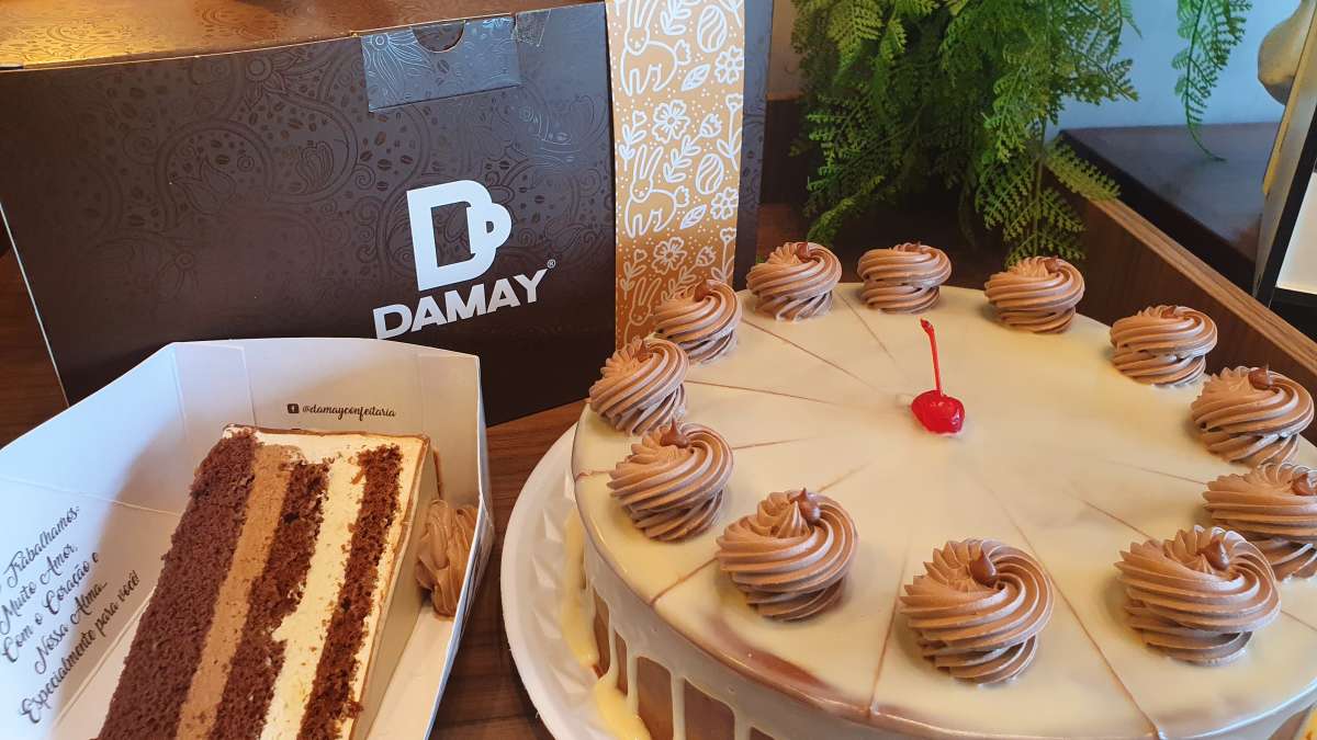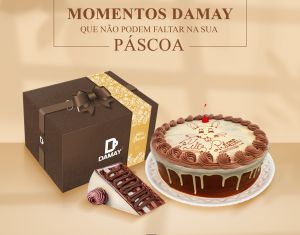 Uma das melhores épocas do ano se aproxima, e a Damay preparou várias novidades para sua Páscoa 2021. A Torta Kinder conta uma decoração especial, além das fatias que ganham um super adicional de chocolate. Nossa caixa de presente é uma mega opção de presente, conta agora com uma cinta personalizada de Páscoa, que torna tudo mais especial. Não perca tempo, entre em contato e encomende a melhor opção para sua Páscoa 2021.