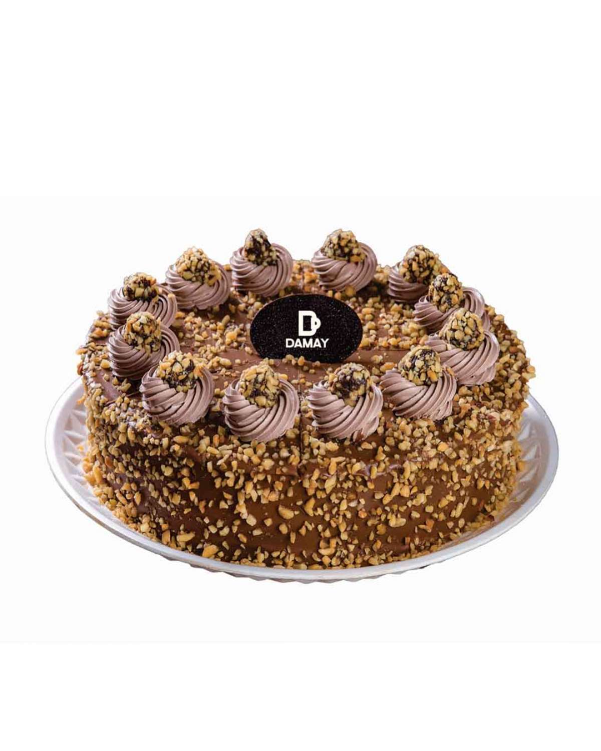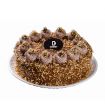 Pão de ló de chocolate, uma camada de charge e uma camada de creme de chocolate branco.