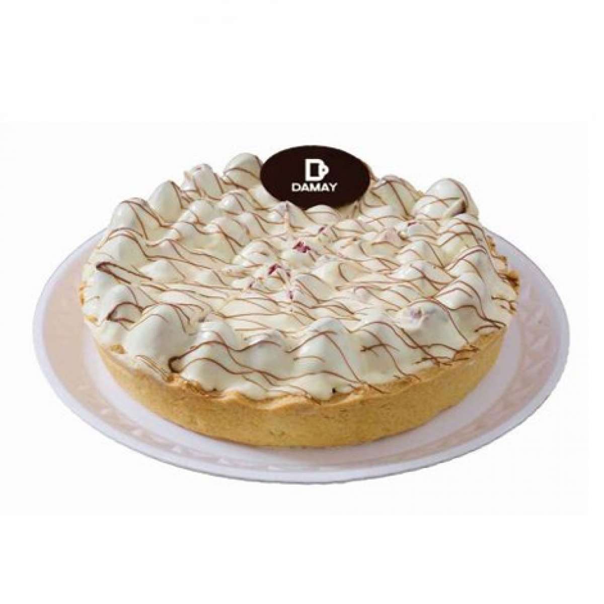 Casquinha Pâte Sablée com creme de danone, morangos inteiros e cobertura de chocolate branco.