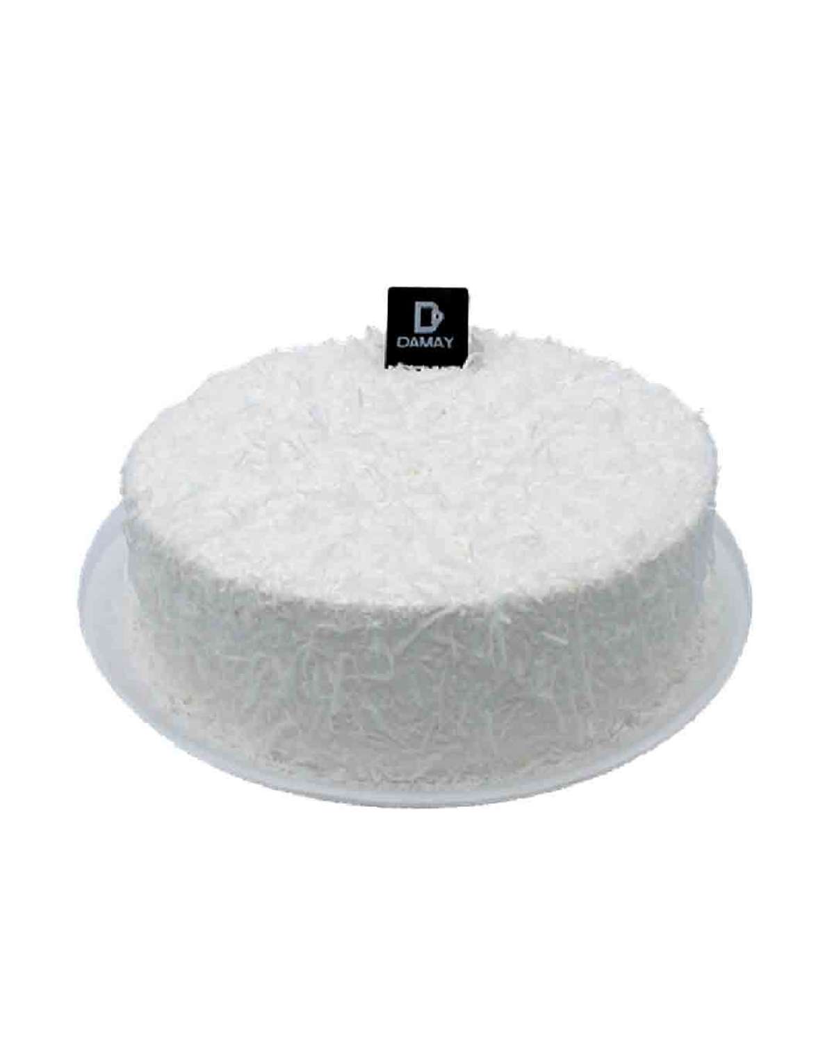 Pão de ló branco, creme, nata, abacaxi e cobertura de coco.