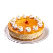 Base amanteigada de bolacha e mousse com creme de iogurte e geléia de damasco. Torta sem lactose*.