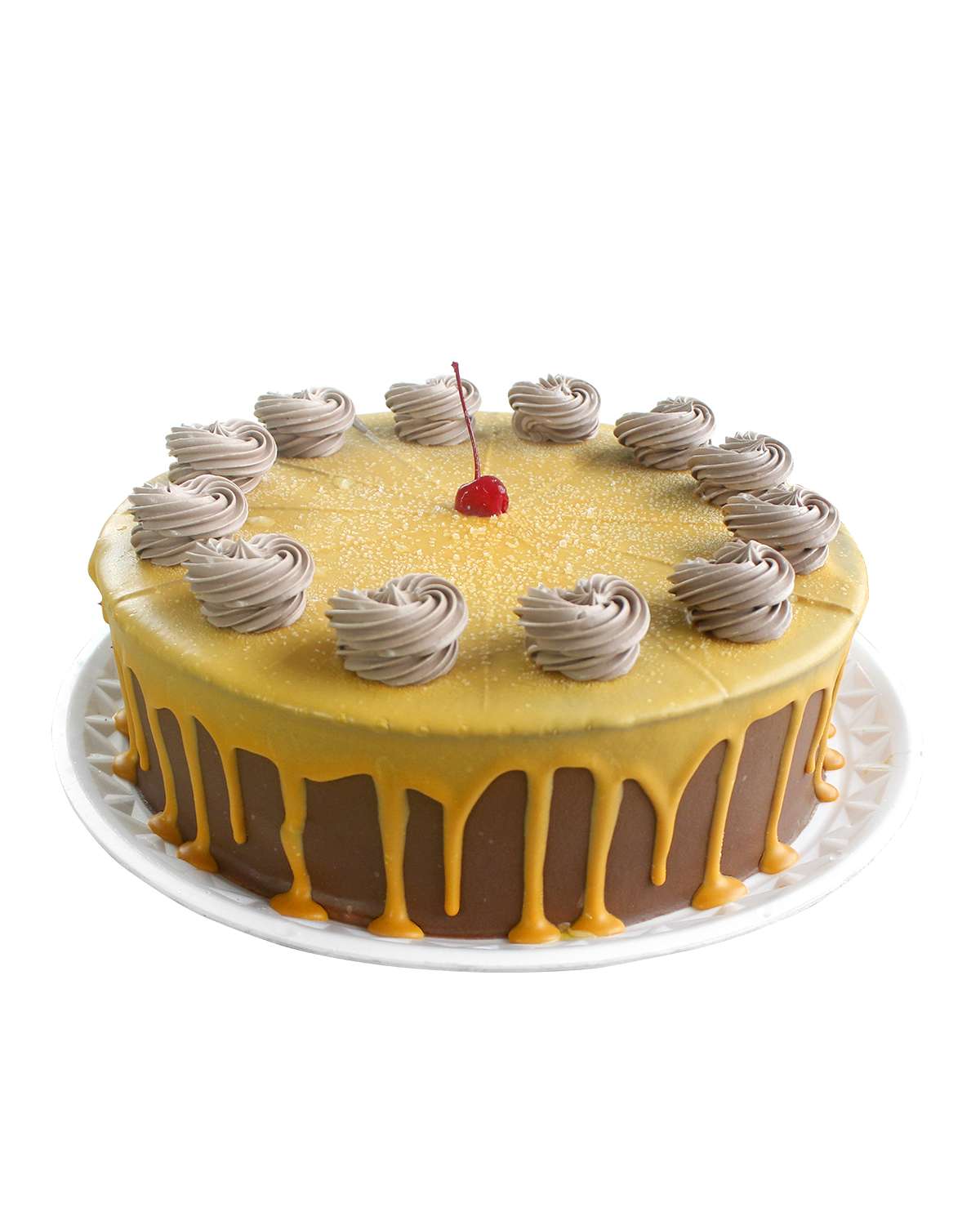 Pão de ló de chocolate, com creme amanteigado de café e mousse de chocolate meio amargo.