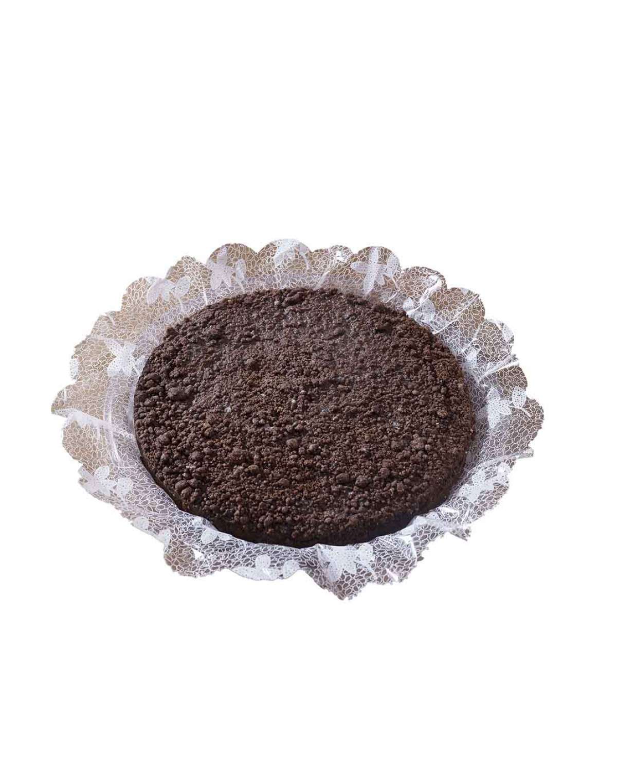 Massa de trigo com chocolate, recheada de chocolate e farofa.